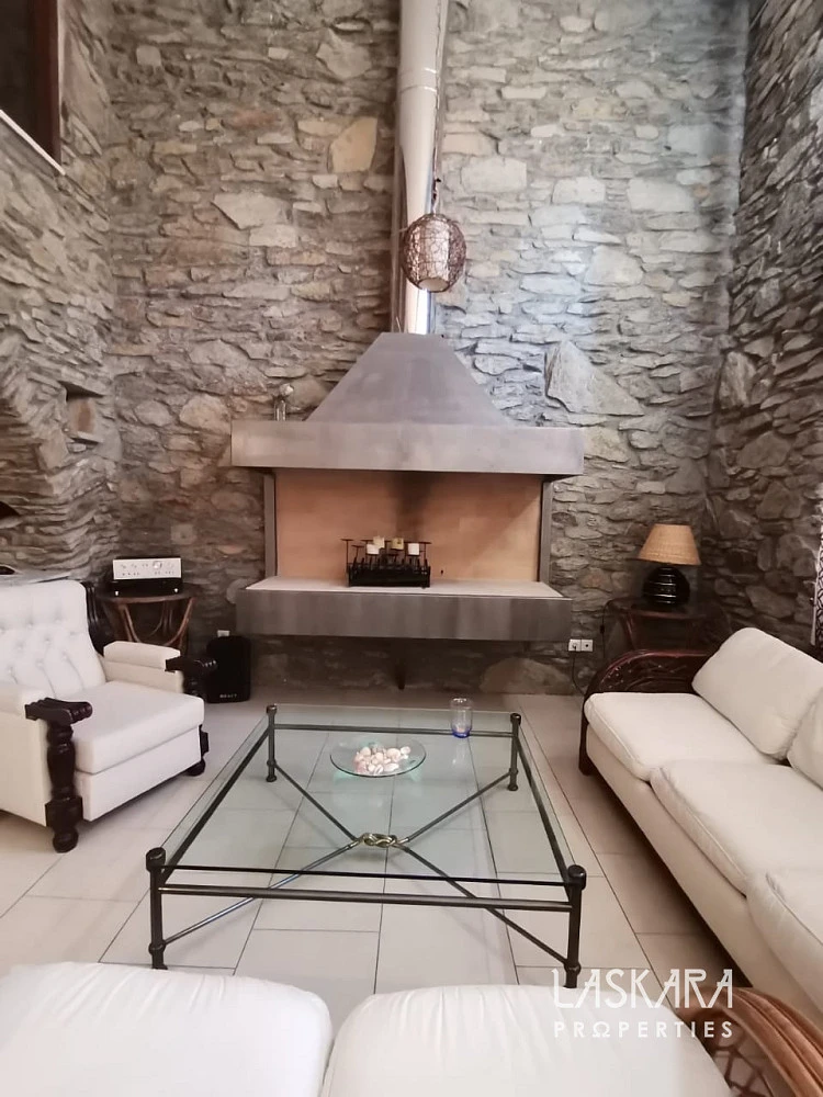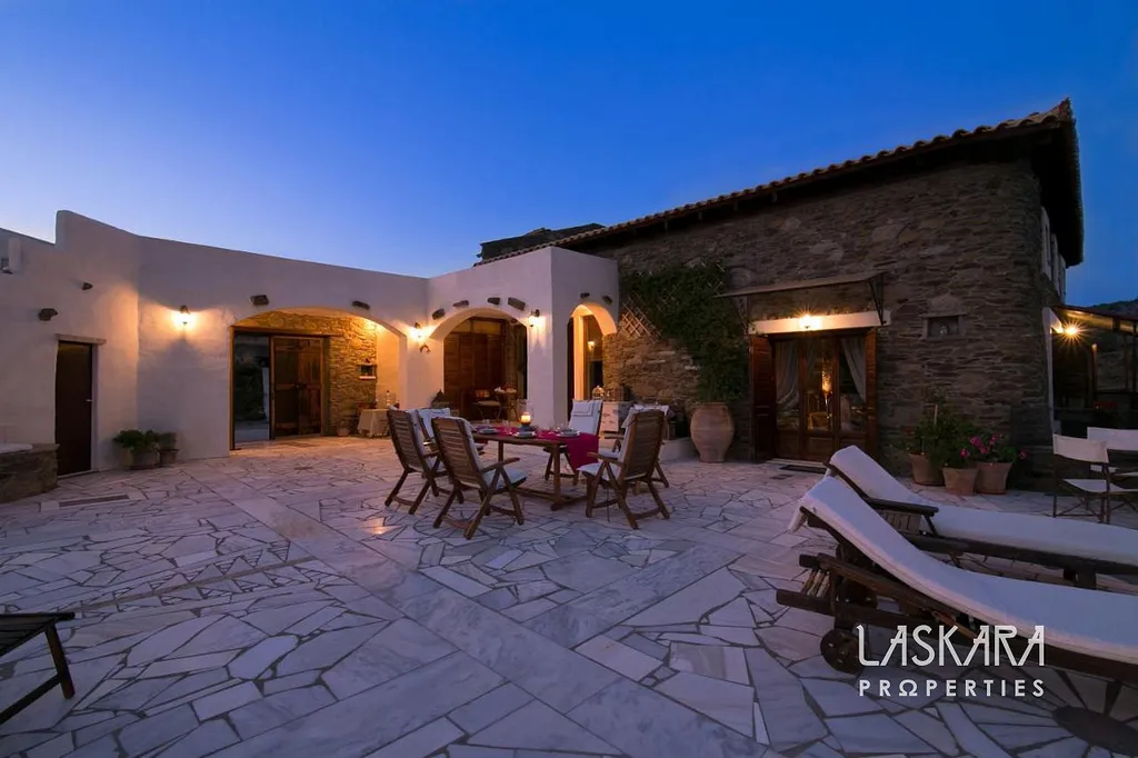 Nemovitost o obytné ploše 410 m² nabízí tři podlaží s mnoha ložnicemi, několika koupelnami, dvěma obývacími pokoji, kuchyní a samostatným apartmánem pro hosty. V přízemí (154 m²) se nachází velkorysý společenský prostor s krbem a starožitným nábytkem, vhodný pro recepce, večeře nebo konference. Kamenné terasy s výhledem na moře, rozsáhlá zahrada a okolní příroda poskytují ideální prostředí pro nezapomenutelné události.