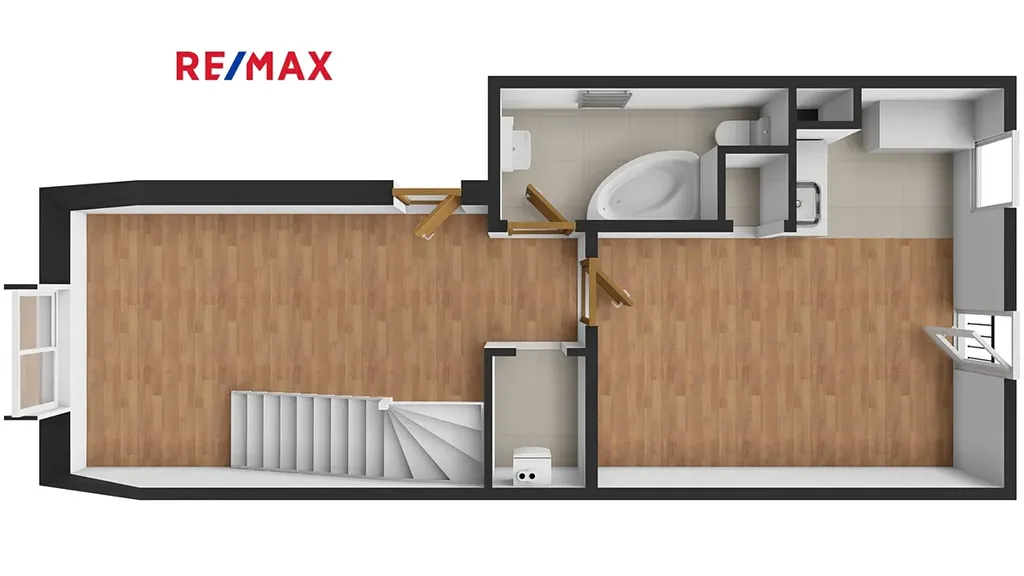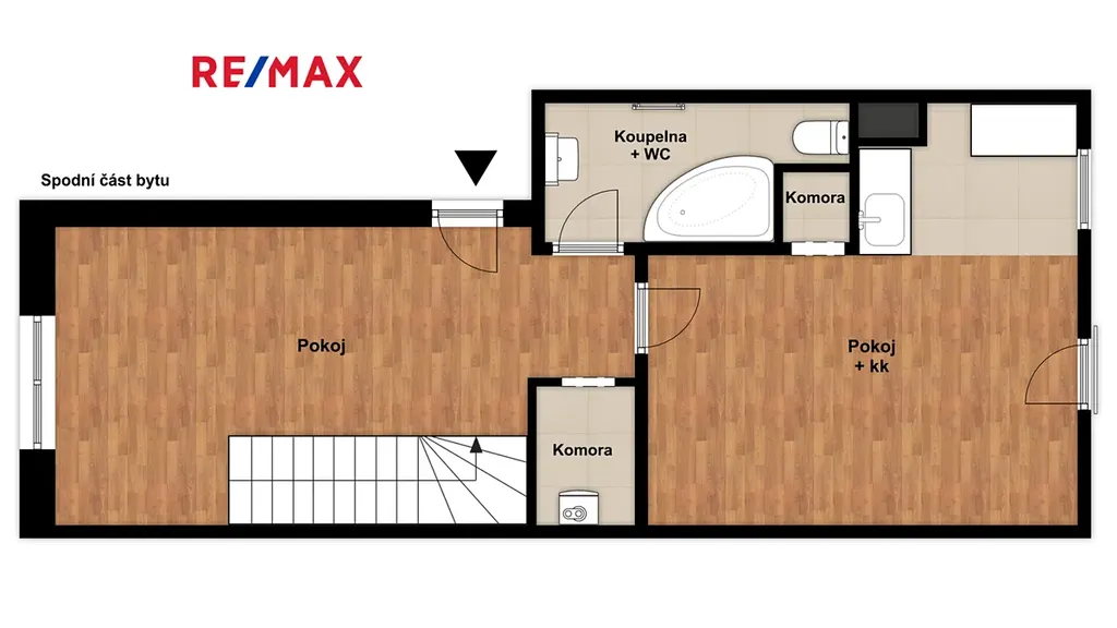 Byt sestává z prostorné kuchyně, obývacího pokoje, koupelny s WC, spíže, komory a ložnice, která je umístěna v patře viz přiložené orientační plánky.