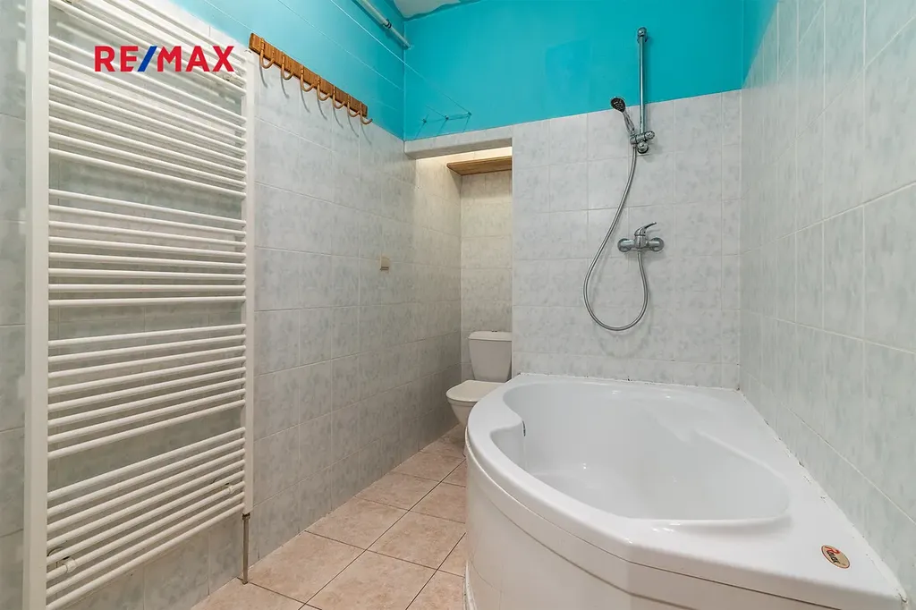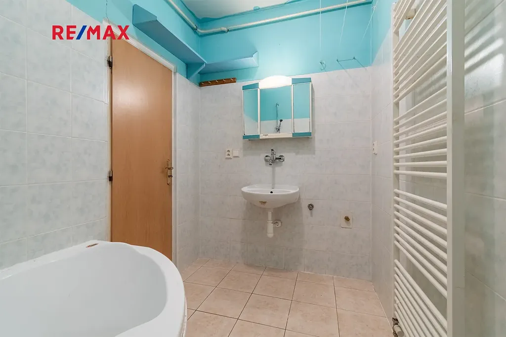 Vytápění bytu i ohřev vody zajišťuje plynový kotel, umístěný v komoře.