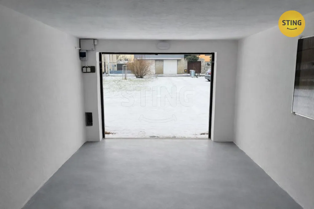 Garáž má cihlové obvodové zdi a dřevěná dvoukřídlá vrata. Je zde elektřina (osvětlení + zásuvky 230V) a odvětrávání v zadní části. Vhodná je jak pro parkování vozidla, tak i jako sklad nebo úložný prostor.