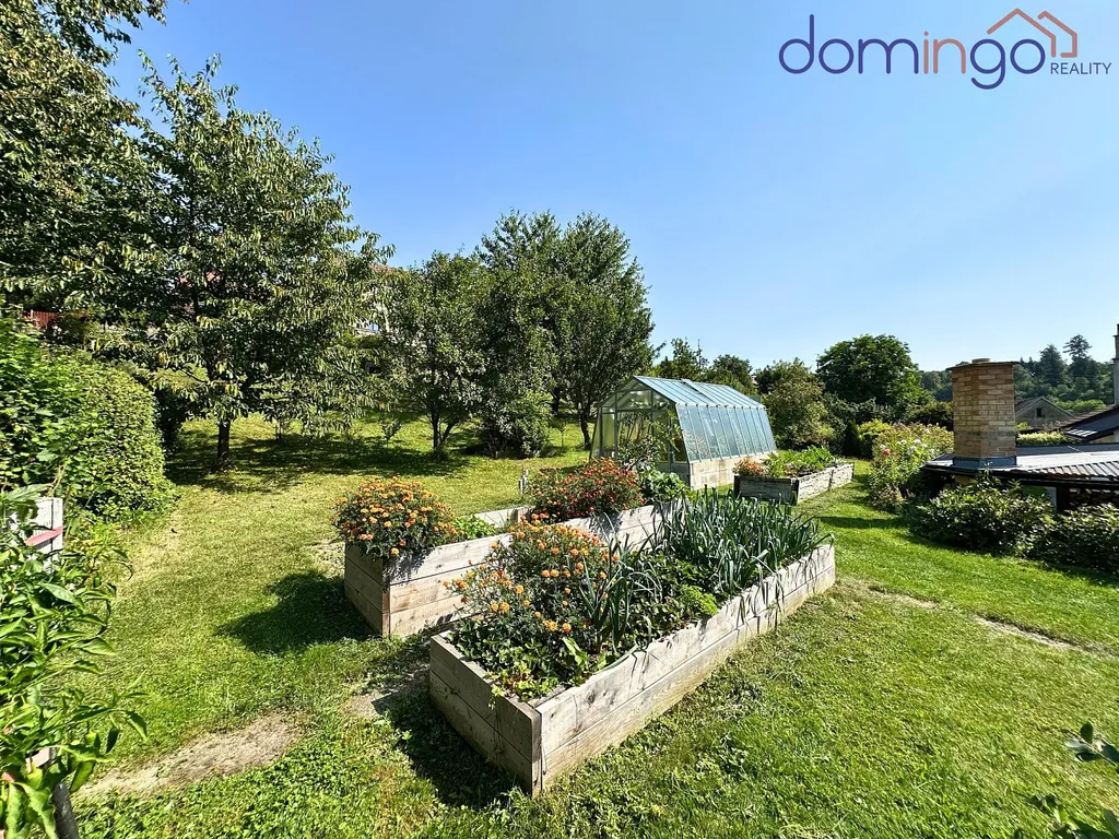 Kolem domu se rozprostírá svažitá zahrada o rozloze 1 325 m², která je díky dlouhodobé péči plná ovocných stromů a jedlých keřů. Pozemek jako celek má 1898 m².