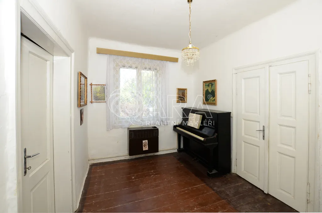 Tento dům smíšené konstrukce je v řadové zástavbě a nabízí dostatek místností pro velkou rodinu. Celková zastavěná plocha domu činí 154 m², zatímco užitná plocha je 99 m². Součástí parcely je také zahrada za domem o celkové výměře 261 m². Na zahradě je meruňka a ořech. Na hranici pozemku je studna s užitkovou vodou a je používaná napůl se sousedy. Další prostory najdete na půdě, která má v ploše přes 100 m² a její prostor tak můžete využít pro další zvětšení domu, například sklad či jiné prostory.