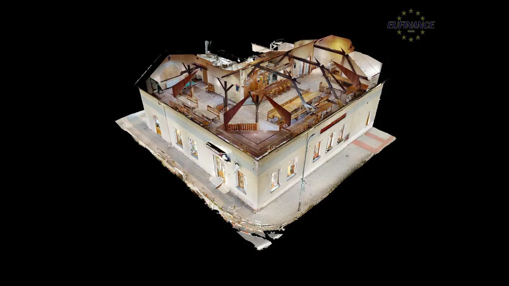 V 1.NP je k dispozici velká prostorná restaurace s barem, kuchyně s dalšími povinnými místnostmi dle hygienických norem, samostatné pánské a dámské toalety, WC pro personál aj. skladovací místnosti. Po točitém schodišti vystoupáme do 2.NP, kde se nachází rovněž velký společenský prostor se stoly, kulečníkovým stolem, velký bar, samostatné dámské i pánské toalety a technické místnosti. Většina objektu je podsklepena a je zde několik technických a skladovacích prostorů.