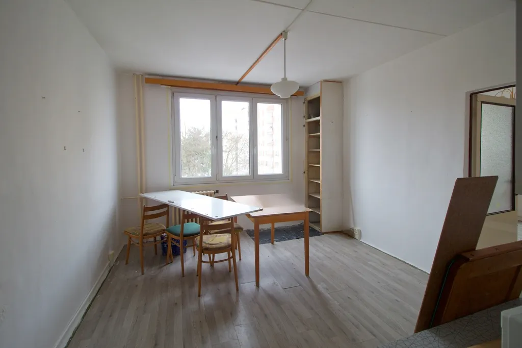 Byt se nachází v udržovaném stavu. Koupelna i kuchyňská linka jsou původní, avšak zachovalé. Kuchyně je vybavena plynovým sporákem a digestoří, praktickým bonusem je také prostorná spíž. Lodžie je umístěna v mezipatře domu a je přístupná ze společných prostor.