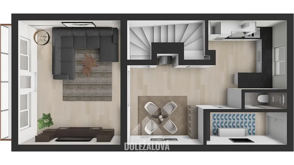 • vstupní zádveří, samostatné WC, kuchyně s jídelnou, prostorný obývací pokoj, lodžie orientovaná na jih