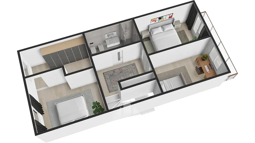 • tři ložnice, šatna u hlavní ložnice, lodžie na jižní stranu
