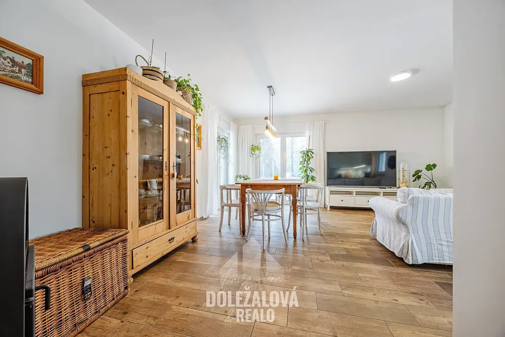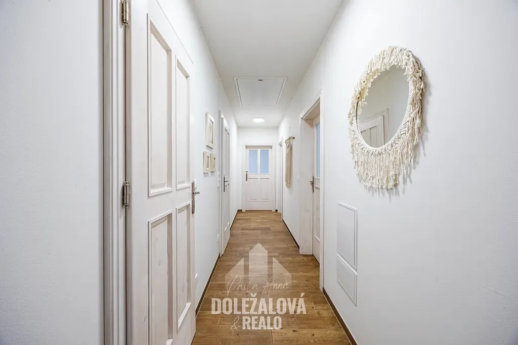 Dále se zde nachází tři samostatné pokoje, koupelna s vanou i sprchovým koutem a praktické zázemí domu.