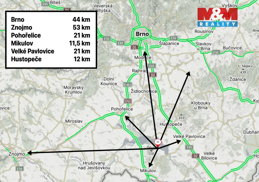 Dle územního plánu je pozemek vhodný k výstavbě rekreačního objektu, což z něj činí zajímavou příležitost jak pro vlastní rekreaci, tak i pro dlouhodobé zhodnocení investice. Lokalita je dlouhodobě velmi žádaná a nabízí široké možnosti volnočasového vyžití – cyklostezky, turistiku, koupání, vodní sporty i rybaření. Samozřejmostí je také blízkost vinařství a vinařských stezek, které k oblasti Pálavy neodmyslitelně patří.