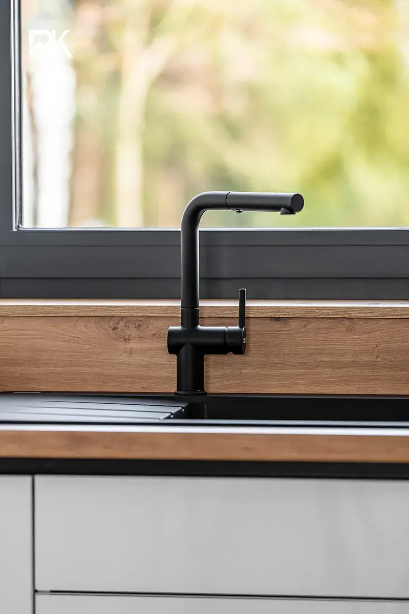 Technické parametry a standardy Základem vysokého standardu domu je obálka budovy s vynikajícími izolačními schopnostmi. Výplně otvorů tvoří hliníková okna s izolačními trojskly a skrytými panty, zajišťující špičkový tepelný i akustický komfort. V obývací části je instalován třímetrový HS portál (posuvně-zdvižný systém), který bezbariérově propojuje interiér se zahradou.