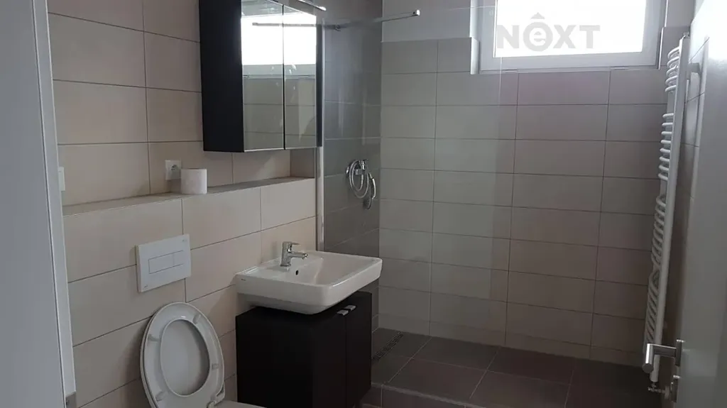 Koupelna je včetně wc, opatřena sprchovým koutem a skříňkou se zrcadlem.