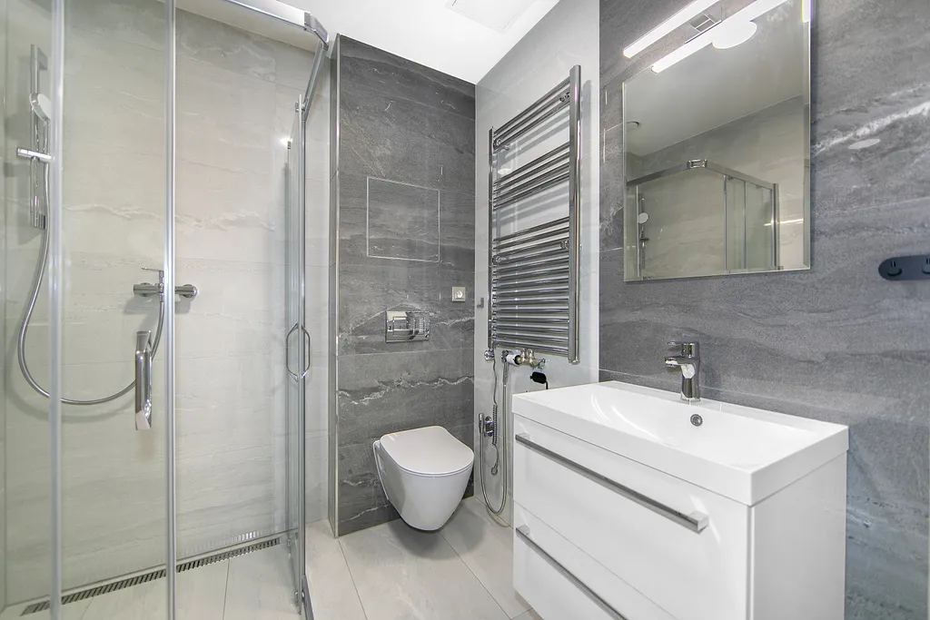 ✔ podlahové vytápění v koupelně, luxusní velkoformátová dlažba