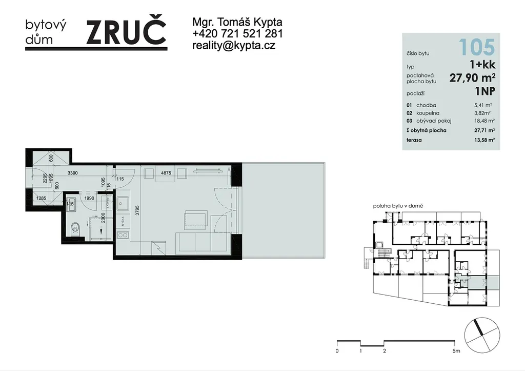 Nabízíme k pronájmu krásný, 2 roky starý, byt 1 kk s terasou (byt o výměře 28 m² + terasa 14 m²) v exkluzivní Rezidenci ACTIVITY ve Zruči – v uzavřeném areálu obklopeném přírodou a sportovišti.