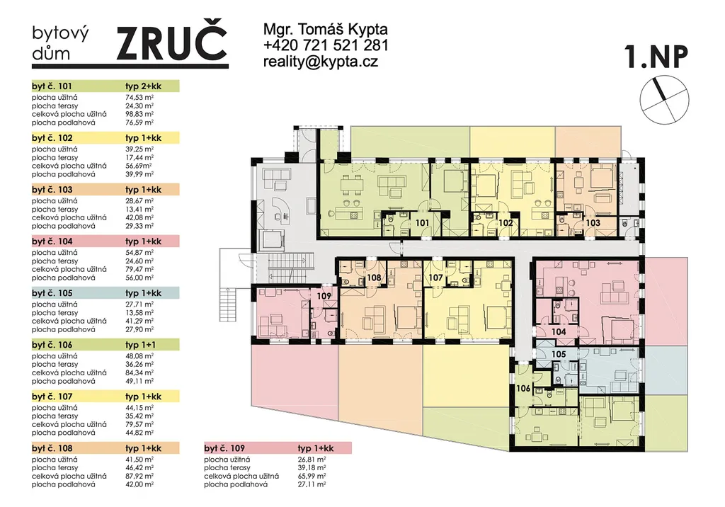 ✔ světlý byt v 1. NP orientovaný na východ s bezbariérovým přístupem a terasou