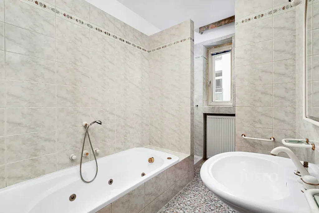Koupelna je prostorná, světlá a po rekonstrukci, nabízí nejen vanu, ale také sprchový kouta. Samozřejmostí je umyvadlo se zrcadlem. Toaleta je součástí koupelny. Plastová okna zajišťují dobrou tepelnou a zvukovou izolaci, byt je vytápěn lokálním plynovým kotlem, který zároveň slouží jako zdroj teplé vody. K bytu náleží také sklep o ploše 1,5 m².