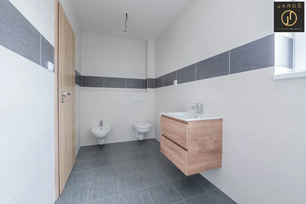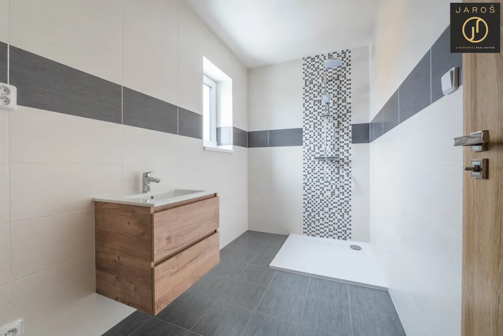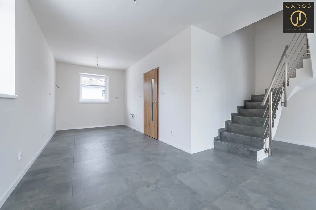 Dům nabízí promyšlenou dispozici a kvalitní zpracování. V přízemí je zádveří, samostatné wc, technická místnost, šatna a světlý obývací prostor s kuchyní a přímým vstupem na terasu. V patře jsou tři samostatné pokoje, koupelna se sprchovým koutem, bidetem a wc. V celém domě je na podlahách kvalitní dlažba.