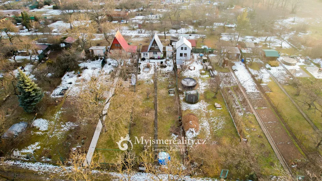 Na pozemku stojí zděná dvoupodlažní chatka o zastavěné ploše 12 m², zapsaná v katastru nemovitostí. Disponuje komínem, v přízemí je místnost s kamny, v podkroví je další ložnice s možností vybudování "spaní" – ideální zázemí pro pobyt během sezóny.