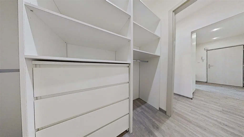 Byt je částečně vybavený volně stojícím nábytkem + vestavné prvky (viz. foto).