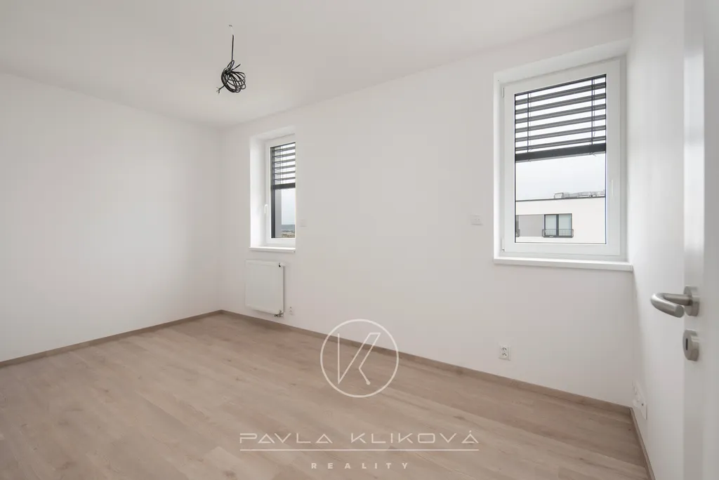 Pronájem klimatizovaného bytu o dispozici 3+kk a výměře 65,7 m², který se nachází v novostavbě bytového domu v Plzni – Skvrňanech, ul. Františka Kováříka. Byt je situovaný v 5. nadzemním podlaží cihlového domu s výtahem, který byl dokončen v roce 2025. Jedná se o velmi světlý byt s okny orientovanými na západ, sever i východ, z obývacího pokoje je krásný nerušený výhled. Dům je architektonicky velmi zajímavý, s velkým atriem. Byt sestává z obývacího prostoru s kuchyňským koutem, ložnice a dalšího samostatného pokoje. Kuchyňská linka je vybavena spotřebiči (indukční varná deska, el. trouba, mirovlná trouba, myčka, lednice a mrazák). Koupelna je se sprchovým koutem, WC samostatné. V předsíni jsou vestavěné skříně, prostor pro pračku a okna, které celý prostor krásně prosvětlují. V bytě jsou dvě klimatizační jednotky (v kuchyni a předsíni), vinylové podlahy a keramická dlažba v koupelně a na WC. Okna mají předokenní elektrické žaluzie. K bytu náleží garážové stání v podzemní garáži a sklep. Klidná lokalita na okraji sídliště, jen pár metrů od konečné tramvaje č. 2. Byt je k nastěhování od 1.4.2026. Nájem 23 000 Kč/měsíc, zálohy 3.000 Kč/měsíc + elektřina, jistota 46 000 Kč, provize 27 830 Kč.
