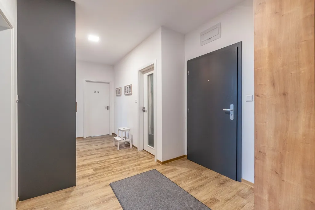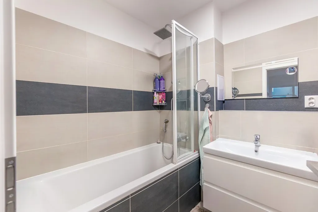 Současný podnájemce si na své náklady nechal v bytě namontovat venkovní žaluzie a vyrobit na míru vestavné skříně. Vše pak zde může po dohodě ponechat k užívání.