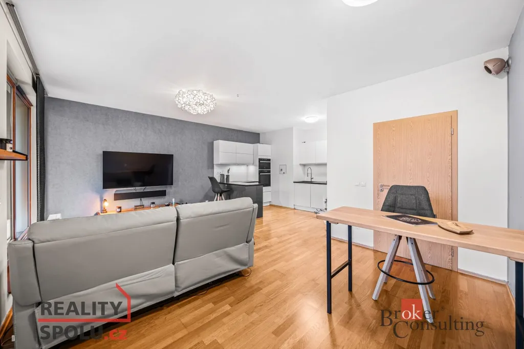 Byt nabízí moderní a praktické dispoziční řešení, které zajišťuje komfortní bydlení jak pro rodinu, tak pro pár. Dispozice bytu zahrnuje prostorný obývací pokoj s kuchyňským koutem vybaveným kuchyňskou linkou, ložnici se šatnou, samostatný dětský pokoj, koupelnu s toaletou, další samostatnou toaletu a praktickou technickou místnost. Součástí bytu je lodžie, která poskytuje příjemný prostor k relaxaci. K bytu náleží také parkovací stání v podzemní garáži.