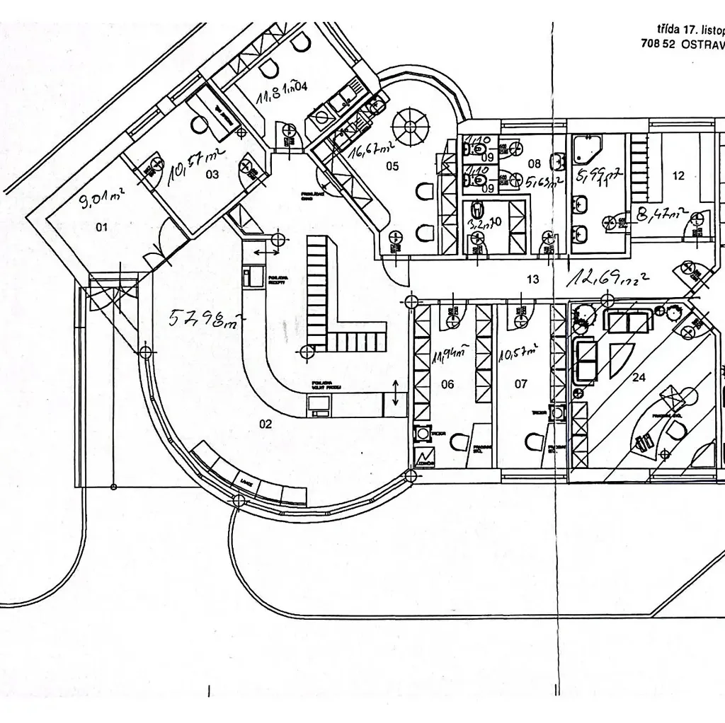 Nabízíme pronájem obchodních prostor v budově Proactiv Fitness vedle zdravotního střediska. Podlahová plocha nabízené časti je 160m². Prostor sloužil jako lékárna s laboratoří a zázemím. Prostor je možno využít jako obchodní plochu, skladovací plochu, e-shop apod. Do vstupu do prostoru je zádveří, které je velké 9.01 m², dále kancelář o velikosti 10,57m². Velká obchodní plocha o velikosti 57,98m². Dva skladovací prostory o velikosti 16,67m² a 11,94m². Kuchyňka 11,81m². Velký prostor s dvěma WC o velikosti 7,8m². Hlavní kancelář 10.57m². Dále šatna se sprchou o velikosti 14,5m² a prostorná chodba která je velká 12,69m². Za budovou je soukromé parkoviště a před budovou se nachází obrovské veřejné parkoviště. Prostory jsou vybavené jako lékárna, po domluvě je možno prostory upravit, vyklidit.