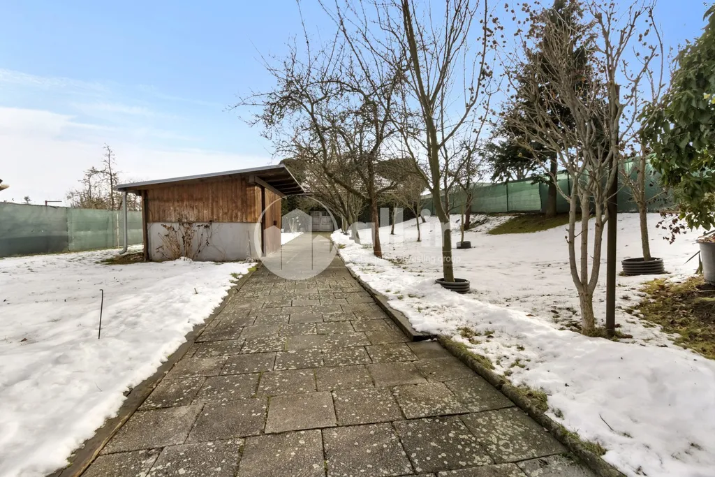 Na zahradě je možné využít pergolu, sklípek, skleník a kůlnu. Nemovitost má vlastní studnu.