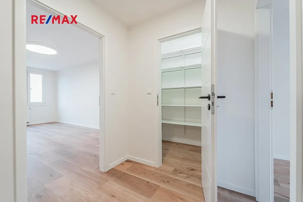 V celém bytě jsou nové vinylové podlahové krytiny, plastová okna s izolačními trojskly a předokenními žaluziemi. Moderní kuchyňská linka je vybavena vestavěnými spotřebiči. Velkou výhodou jsou dvě samostatné šatny s regálovým systémem, které perfektně řeší každodenní potřebu úložného prostoru.
