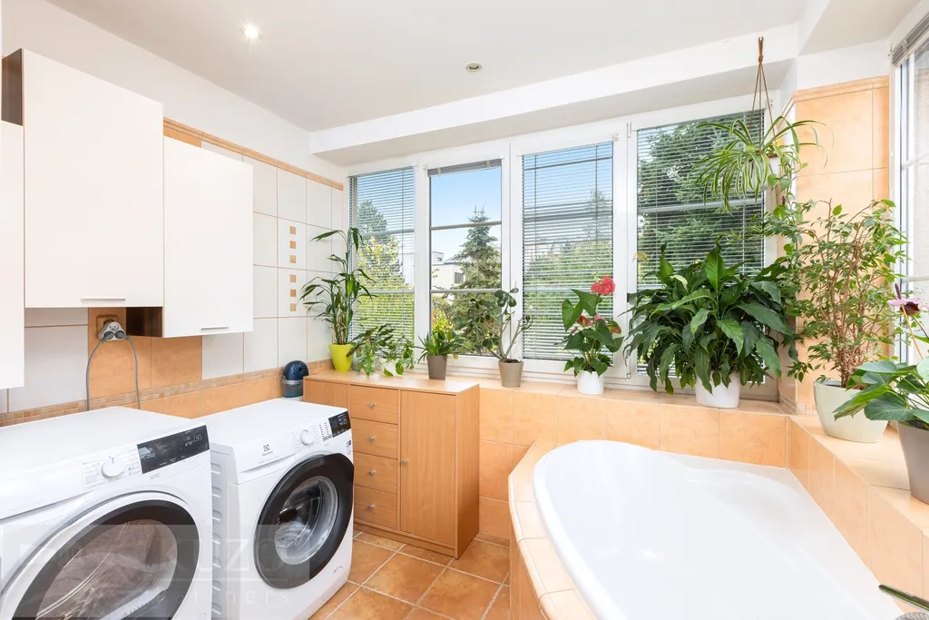 Vytápění bytu je zajištěno elektrokotlem, ohřev teplé vody bojlerem. K bytu náleží prostorná sklepní kóje o výměře 17,9 m², garáž o velikosti 13,4 m² a dále polovina zahrady (150 m²) s bazénem, která poskytuje ideální zázemí pro relax, odpočinek i letní posezení.