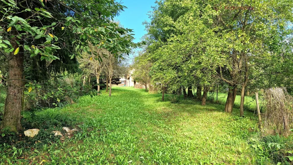 Za dvorem pokračuje krásná velká zahrada se vzrostlými ovocnými stromy. Je tudy možný další příjezd k zadní části domu a také možné budoucí další stavební místo.