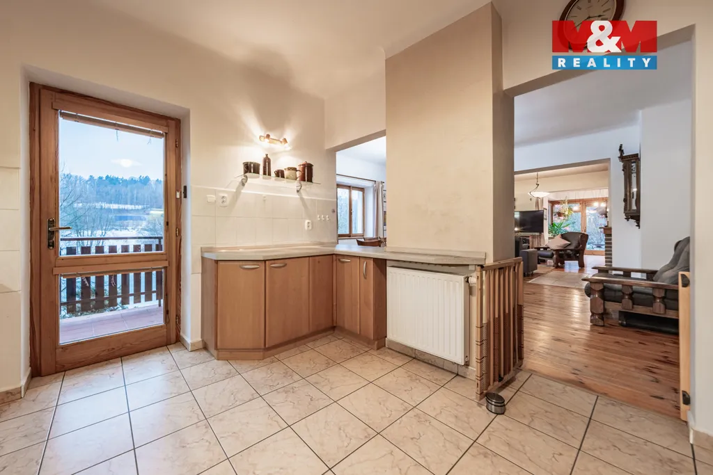 Exkluzivně nabízíme k prodeji rodinný dům o dispozici 10 + 2, užitné plochy 312 m2 v Mnichovicích u Říčan, na místě, které je skutečnou oázou klidu. Třípatrový dům stojí na pozemku o velikosti 2428 m² a nabízí výjimečný prostor i soukromí. Nemovitost je koncipována jako třígenerační bydlení se třemi samostatnými bytovými jednotkami a deseti pokoji. Každé patro má dostatek světla, příjemnou atmosféru a interiér doplněný dřevěnými podlahami, které podtrhují nadčasový charakter domu. Kompletní rekonstrukce z roku 2002 dala nemovitosti nový život. Součástí domu je zimní zahrada, krb a balkon s výhledem na rybník, který ocení zejména nadšenci rybolovu. Orientace domu na jih a jihozápad zajišťuje slunce po celý den a nabízí ideální podmínky pro využití fotovoltaiky. Zahrada s pergolou je místem pro relaxaci i letní grilování. K domu náleží garáž a další parkovací místa na pozemku. Toto místo nabízí domov s atmosférou, kam se budete rádi vracet.