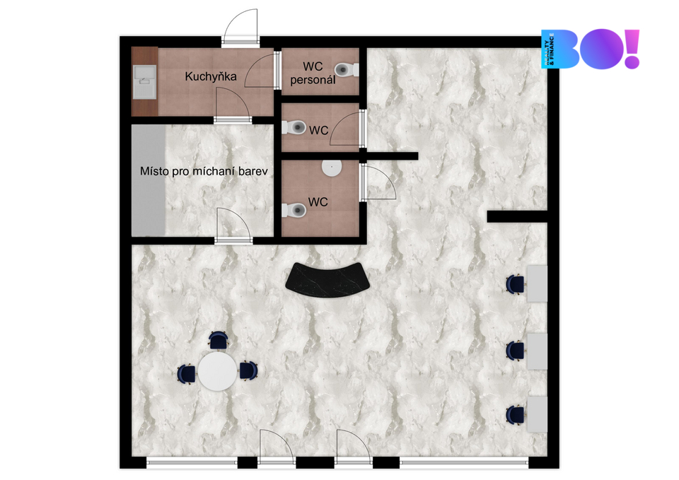 samostatná místnost pro míchání barev