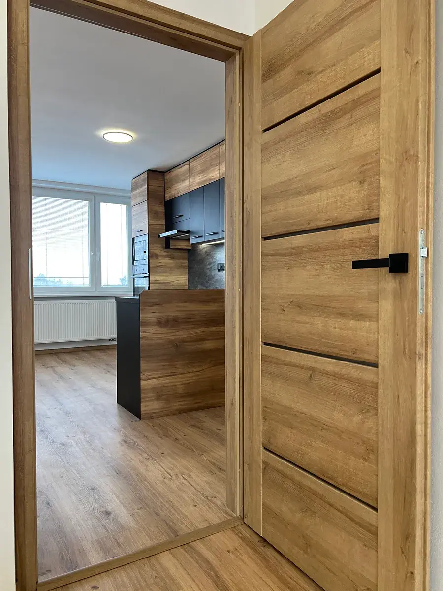 - Rekonstrukce zahrnovala: nové topení, včetně rozvodů a kotle, nové rozvody elektřiny, nové štuky, podhledy, podlahové krytiny i dveře, nová kuchyňská linka včetně spotřebičů.