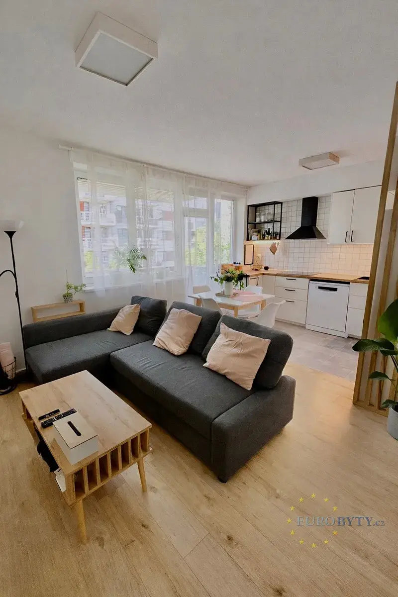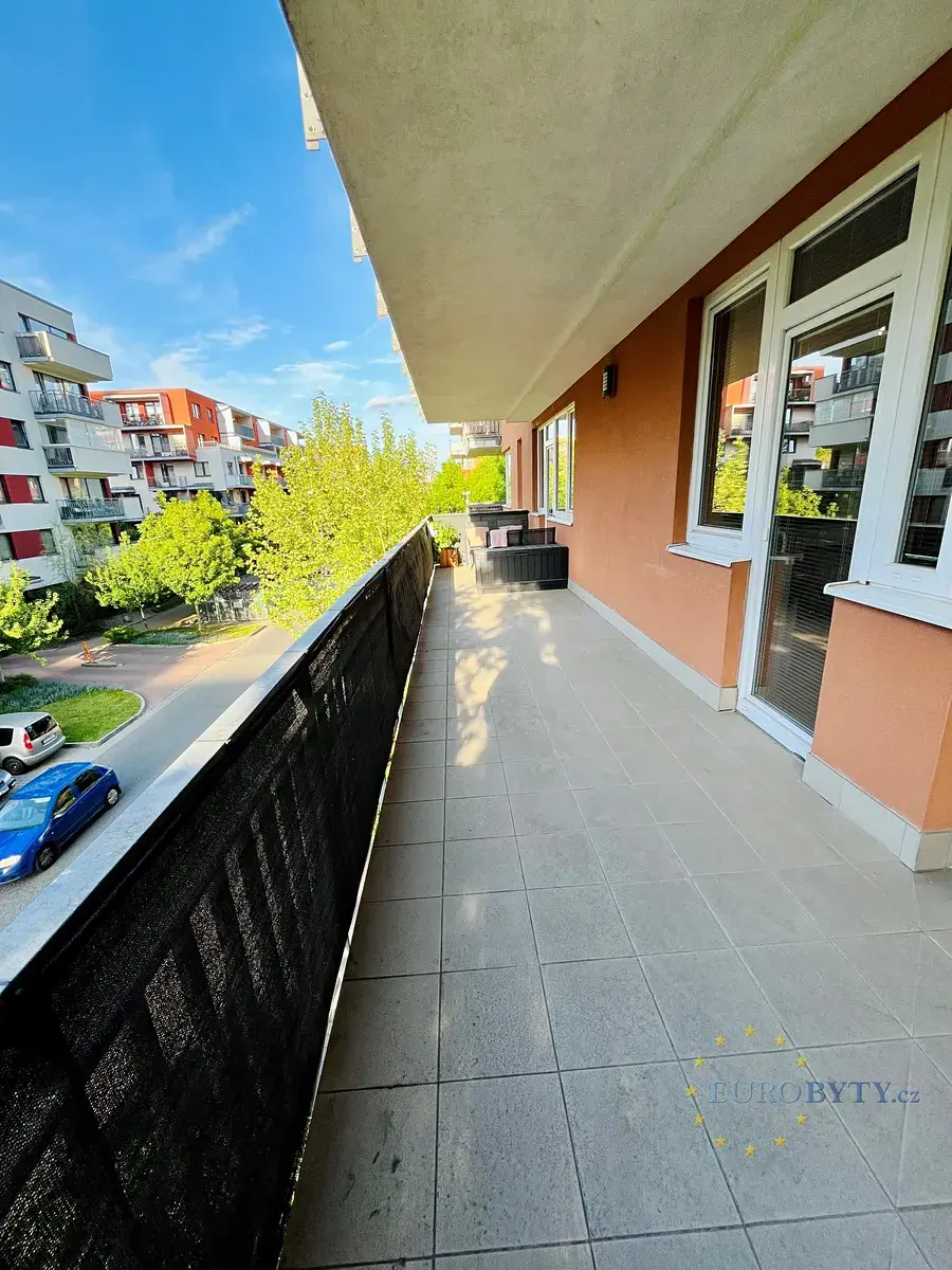 Dovolujeme si Vám ve Výhradním zastoupení vlastníka nabídnout velice hezký 2+kk 43,9m2 s Terasou kolem celého bytu o velikosti 34m2 s orientaci na 3 světové strany, která funguje jako plnohodnotné rozšíření obytného prostoru. Byt se nachází v 1 patře domu s výhledem do ulice Pod Harfou. Orientace byt a zejména terasy je severovýchodní s tím, že prolukou ulice je terasa osvětlována jak východní sluncem tak i při západuideální světlý byt ve všech ohledech ne ovšem nijak přehřátý. Byt v roce 2022 prošel menší rekonstrukcí, zejména koupelny. SVJ nyní nově svolilo k případnému zasklení teras, lze tedy částečně nebo zcela nechat terasu zasklít či podobně uzavřít. Dispozice bytu je praktická a vzdušná. Obývací pokoj s kuchyňským koutem má přímý vstup na terasu, která nabízí dostatek prostoru pro relax, posezení s přáteli i práci z domova. Díky orientaci terasy na východ i západ si zde užijete slunce během rána i odpoledne, zatímco v poledních hodinách poskytuje příjemný stín, což zajišťuje komfort i v horkých letních dnech. Ložnice je světlá, vzdušná a prostorná. Byt je orientovaný převážně na sever, díky čemuž se interiér v letních měsících nepřehřívá. Koupelna je moderní, byt je ve velmi dobrém stavu a připravený k okamžitému nastěhování bez nutnosti dalších investic. Velkou výhodou jsou také nízké měsíční poplatky. Rezidenční areál se soukromým vnitroblokem přístupným pouze obyvatelům a ostrahou.