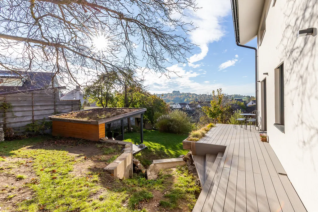 • Prostorná terasa přístupná z obývacího pokoje francouzskými okny.