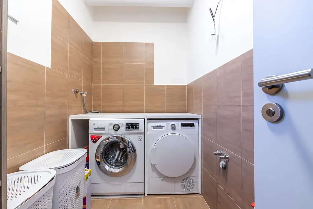 • Přízemí: vstupní hala se schodištěm, prádelna, WC, prostorný obývací pokoj propojený s jídelnou a kuchyňským koutem, terasa.
