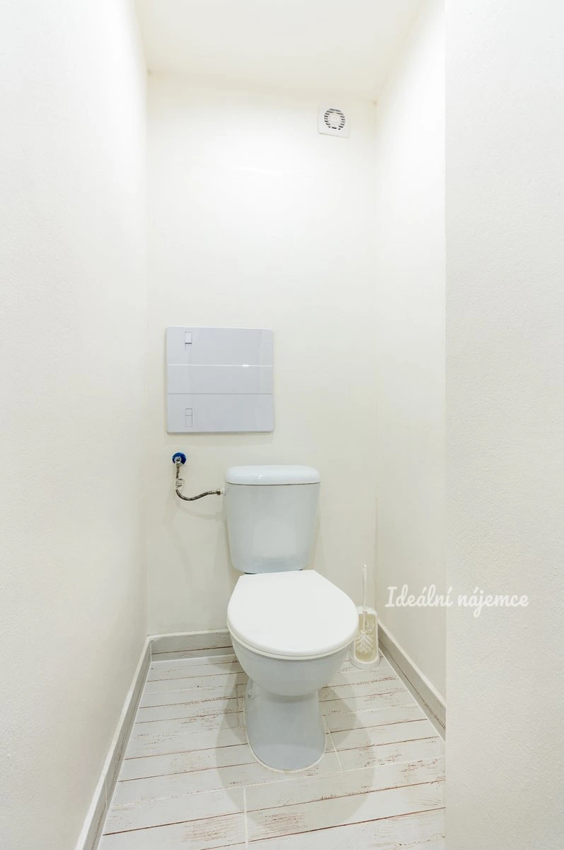 V celém bytě je podlahové vytápění. Ohřev vody je zde taktéž na elektřinu - elektrickým bojlerem.
