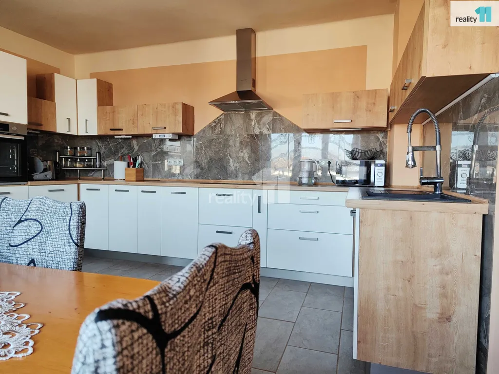 Dominantou je moderně vybavená kuchyň včetně vestavěných spotřebičů, která působí čistě, současně a prakticky – zkrátka místo, kde se budete rádi potkávat.