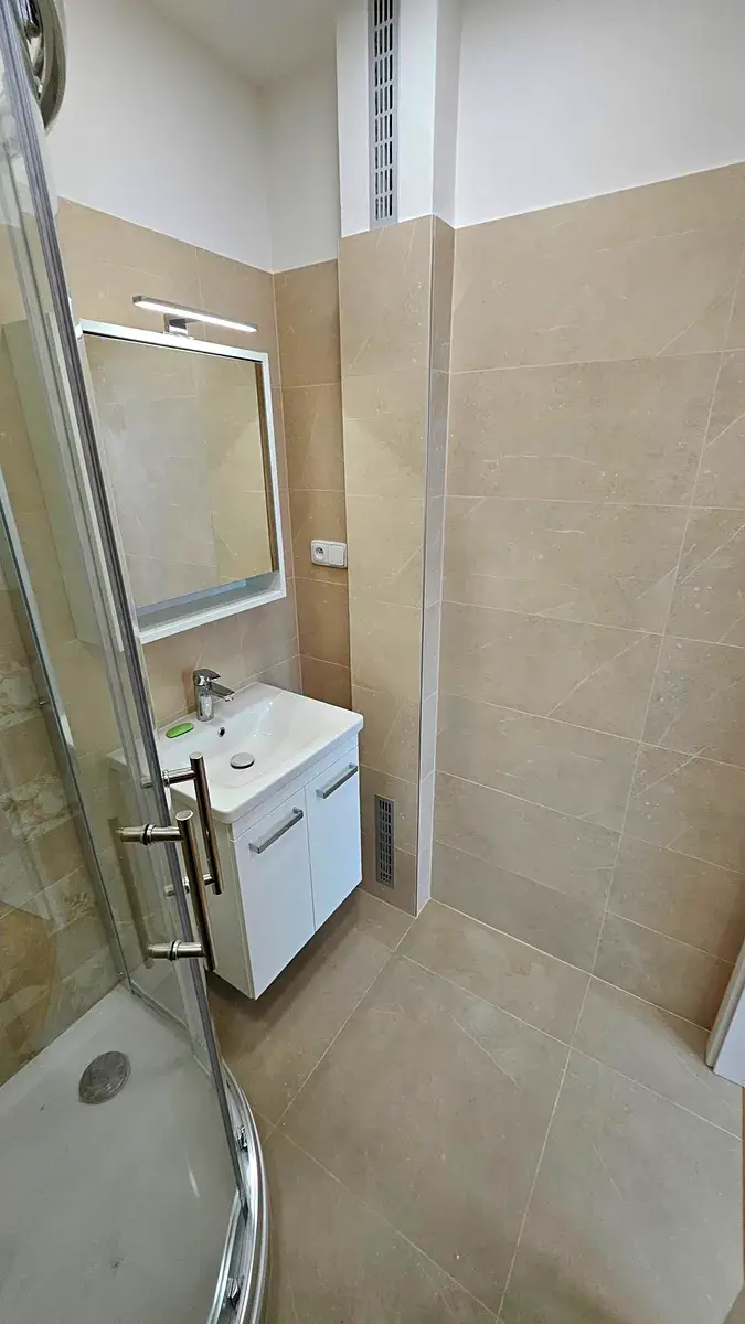 Byt je částečně vybavený – nová moderní kuchyňská linka včetně myčky, nové lednice, indukční desky, elektrické trouby. V bytě je komora, pokoje jsou nezařízené. V koupelně je sprchový kout. WC je samostatné. Po rekonstrukci v bytě ještě nikdo nebydlel.