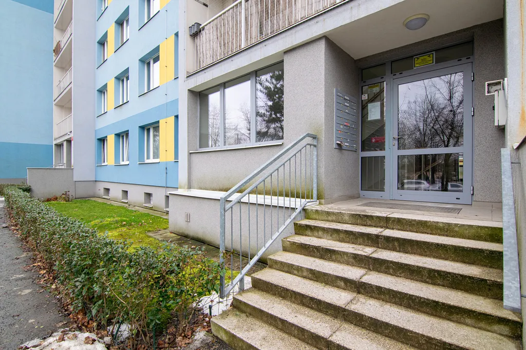 Byt se nachází v posledním 8NP panelového domu s výtahem a má podlahovou výměru cca 46 m². K bytu náleží lodžie o výměře cca 7 m² přístupná z chodby u výtahu a sklepní kóje v -1PP o velikosti cca 3 m².