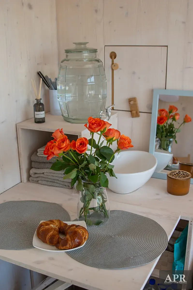 Domek je novostavba s promyšleným interiérem, kvalitním zpracováním a plně vybavený – včetně manželské postele, nábytku, nádobí, solární sprchy či 12V rychlovarné konvice. Elektřinu zajišťuje solární panel s baterií, vytápění plynová kamna s dvouplášťovým komínem na PB. Toaleta je řešena ekologicky. Vše je součástí kupní ceny.