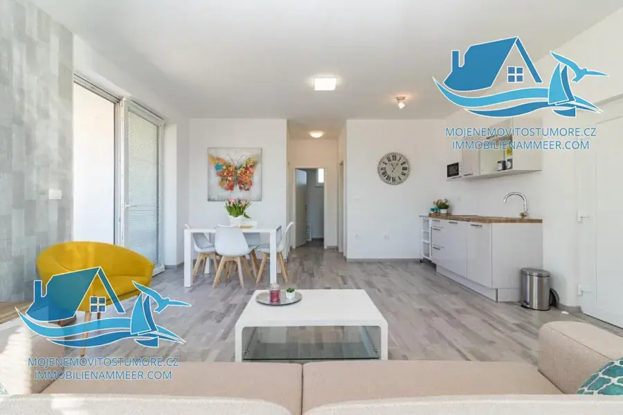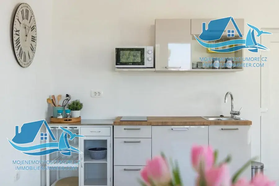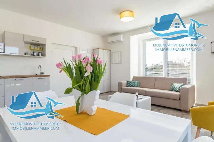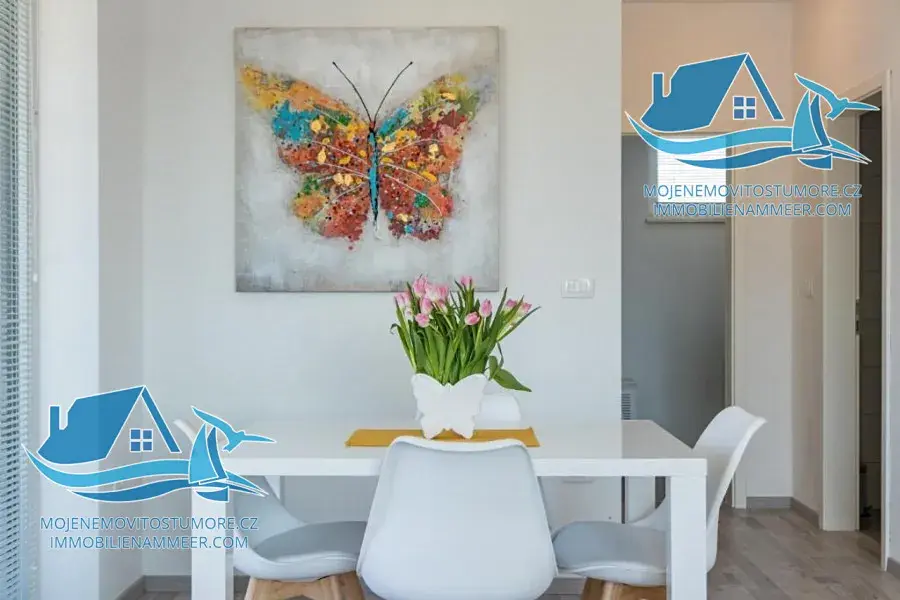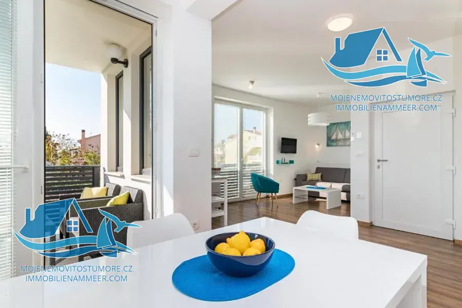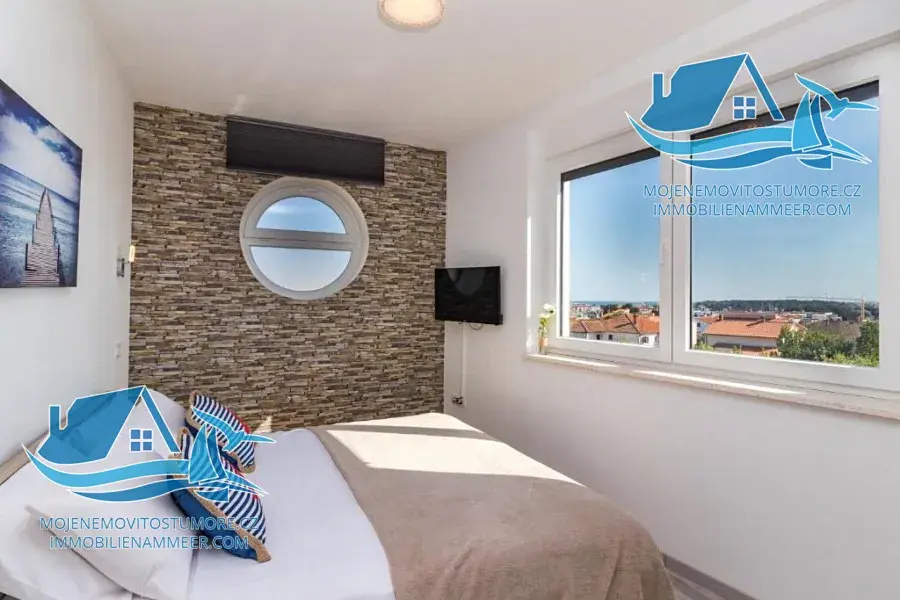 V přízemí se nachází apartmán se dvěma ložnicemi, obývacím pokojem s kuchyní a koupelnou, dále samostatný apartmán majitelů o výměře 47 m². První patro nabízí dva apartmány s terasami, každý s ložnicí, obývacím pokojem, kuchyní a koupelnou. Ve druhém patře se nachází apartmán s balkonem a výhledem na moře a další apartmán rovněž s výhledem na moře. V roce 2018 vila získala ocenění za nejlepší ubytovací zařízení v Istrijském kraji, což potvrzuje vysokou kvalitu, profesionální provoz a silnou poptávku ze strany hostů.