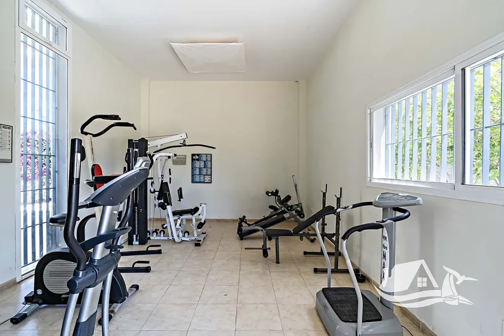 Společné prostory jsou navrženy tak, aby podpořily sousedskou atmosféru a aktivní životní styl, s rozlehlými zahradami pro procházky a odpočinek, společným bazénem pro osvěžení během teplých dnů a vybavenou posilovnou pro pravidelné cvičení bez nutnosti opouštět areál. Okolí městečka Vera nabízí příjemný středomořský rytmus života s lehkým přístupem na pláže, místní obchody, kavárny a restaurace, základní služby a dobré dopravní spojení, což dohromady zvyšuje atraktivitu nemovitosti pro dlouhodobé i sezónní využití.