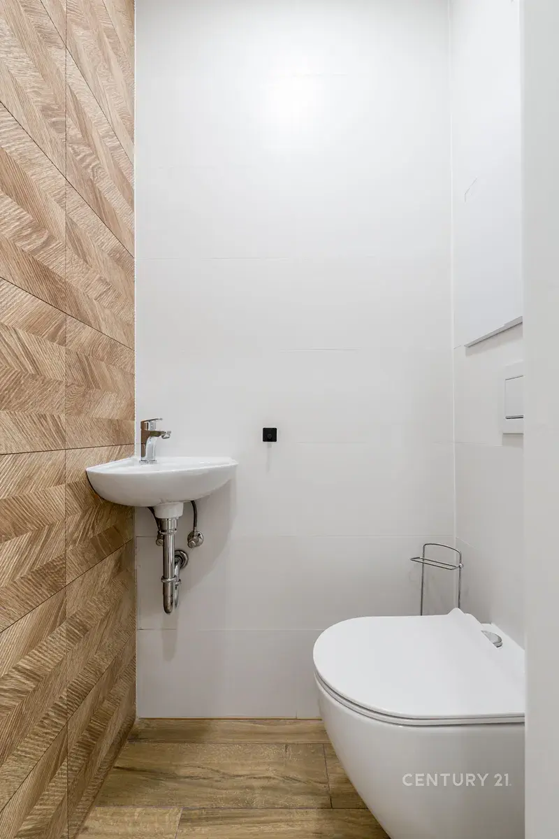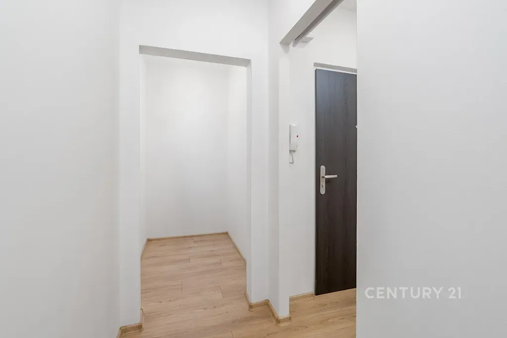 Součástí je nová kuchyňská linka, stylová koupelna se sprchovým koutem, kompletně nové podlahy, dveře, osvětlení a příjemné neutrální barvy v celém bytě. K bytu navíc patří sklep.