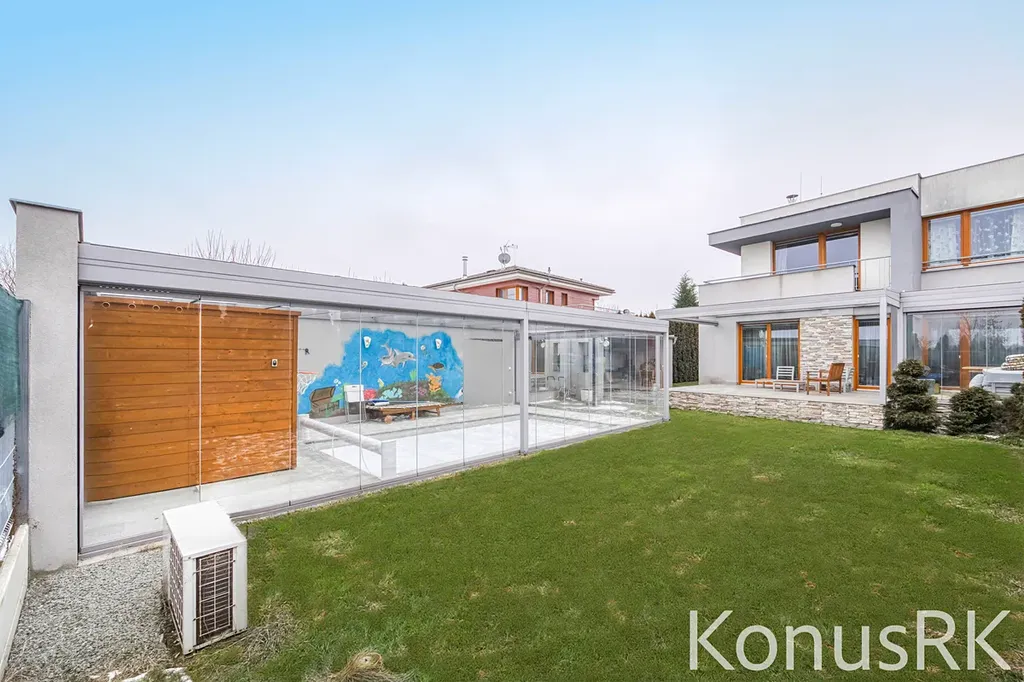 Na udržované zahradě se nachází zastřešený bazén, venkovní elektrická sauna, letní WC a praktická dílna – ideální zázemí pro relaxaci i hobby aktivity.