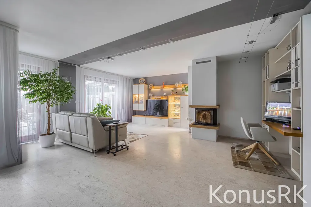 V přízemí domu se nachází světlý obývací prostor s přímým vstupem na zastřešenou terasu, ideální pro posezení v jakémkoli počasí. V srdci domu je plně funkční krb, který nejen navodí útulnou atmosféru, ale zároveň slouží jako efektivní doplňkový zdroj tepla.