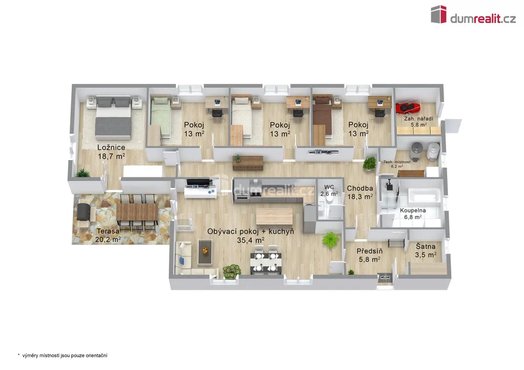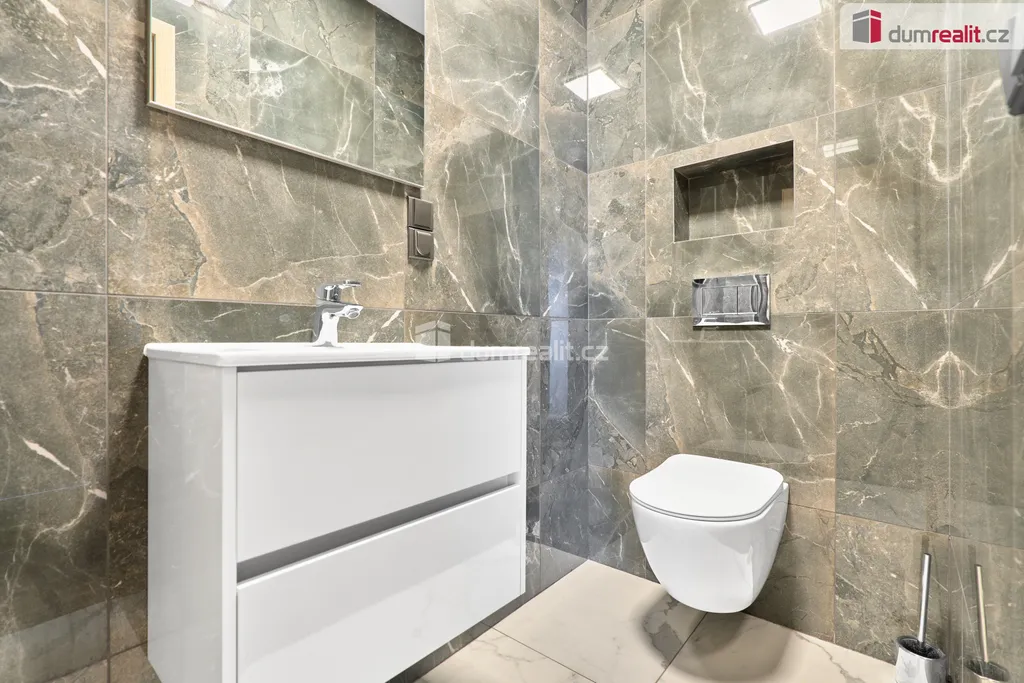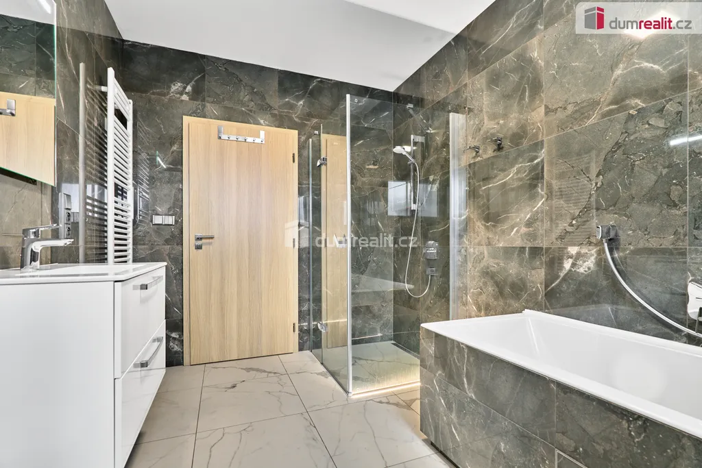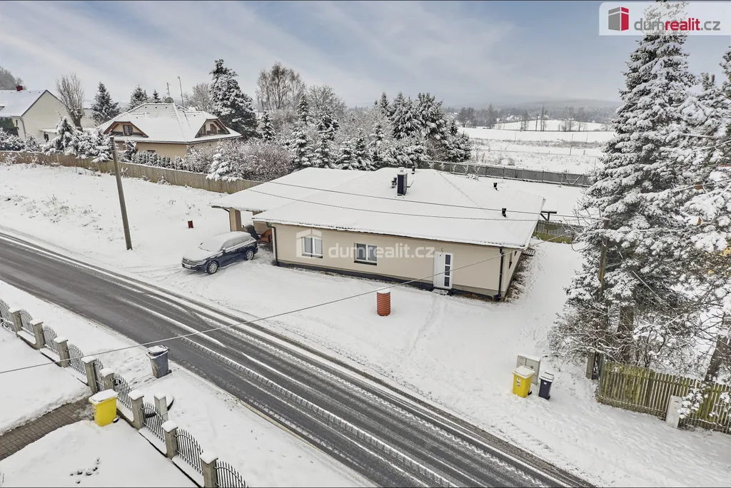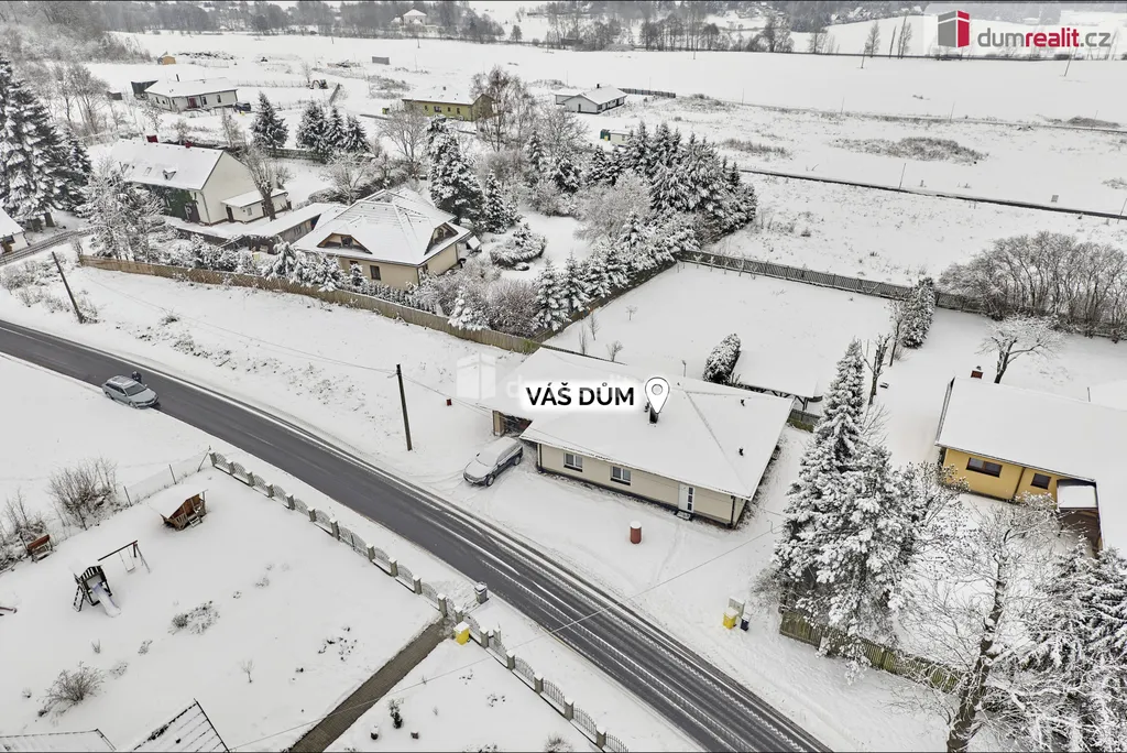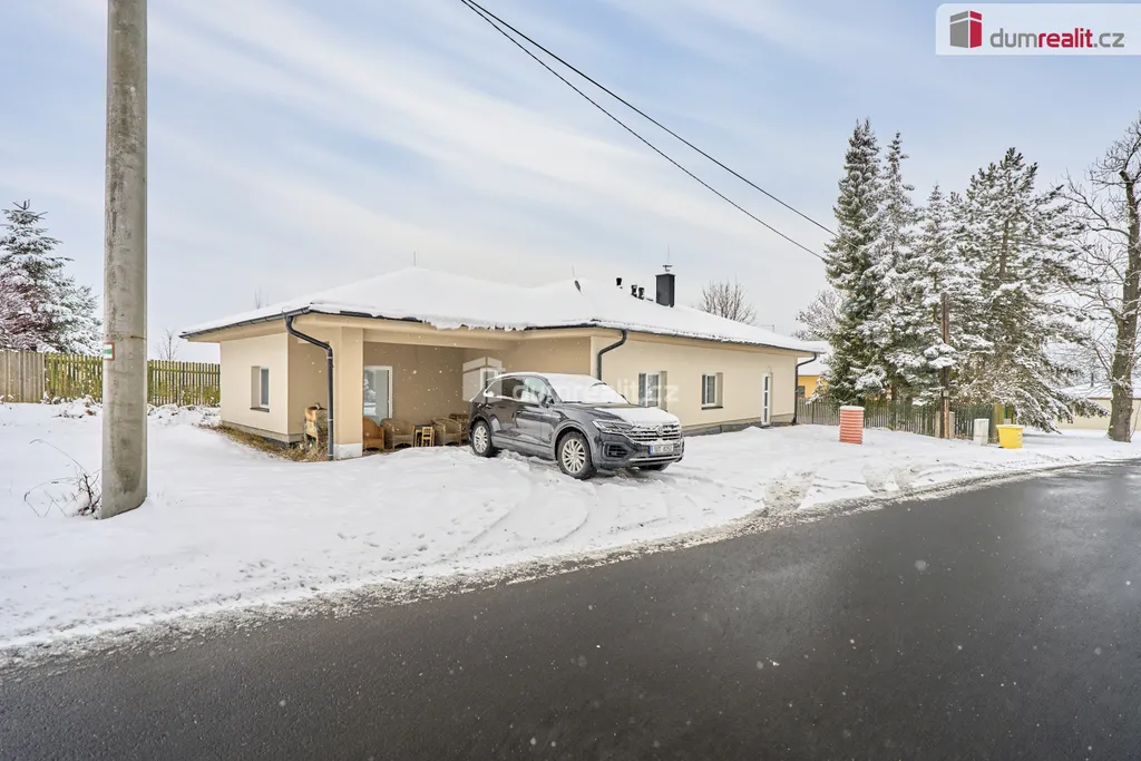 Dumrealit.cz Vám zprostředkuje prodej rodinného domu v obci Andělská Hora, v bezprostředním sousedství Karlových Varů. Přízemní dům byl zkolaudován v březnu 2023 a má dispozici 5+KK - obývací pokoj s kuchyňským koutem a vstupem na terasu, 4 samostatné pokoje, chodba a šatna u vstupu do domu, koupelna s vanou, sprchovým koutem a WC, samostatné WC s umyvadélkem a technická místnost, ve které je umístěn elektrokotel, el. bojler, pračka a sušička. Dále je v domě místnost - sklad na zahradní vybavení se vstupem pouze zvenčí ze zahrady. Kuchyň je vybavena vestavěnými spotřebiči - el. trouba, indukční varná deska, myčka nádobí, digestoř a mikrovlnná trouba. V celém domě je na podlaze dlažba, vytápěn je podlahovým topením, v obývacím pokoji je vše připraveno na instalaci krbových kamen. Na zahradě je retenční nádrž (8 m²) se svodem dešťové vody, pozemek není oplocen. Možnost financování hypotékou, kterou Vám rádi vyřídíme. Ev. číslo: 654262.