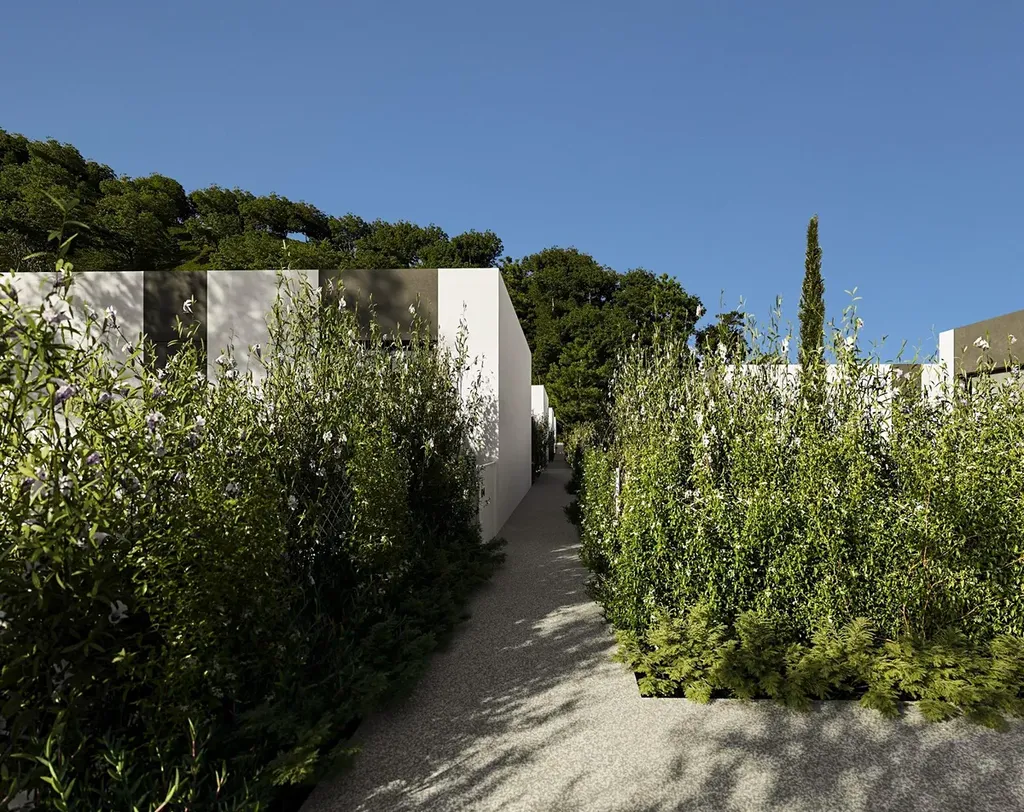 Projekt zahrnuje pouze 14 moderních rohových vil, všechny řešené jako jednopodlažní pro maximální pohodlí a bezbariérový přístup. Každý dům nabízí 3 prostorné ložnice a 2 koupelny, včetně hlavní ložnice s vlastní koupelnou. Důraz je kladen na soukromí a funkčnost – všechny domy mají soukromý bazén, parkování na pozemku a velké venkovní plochy pro celoroční využití středomořského klimatu. Za příplatek je možné vybudovat soukromé solárium, ideální pro relaxaci a slunění.