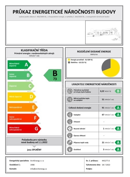 Dům je vybaven moderními technologiemi zajišťujícími nízké provozní náklady a maximální pohodlí: