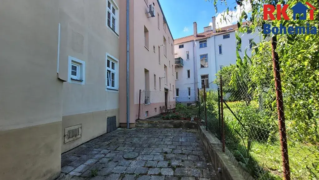 Velkou výhodou je dvůr za domem se společným posezením, který je k dispozici majitelům bytů a nabízí příjemné místo k odpočinku.