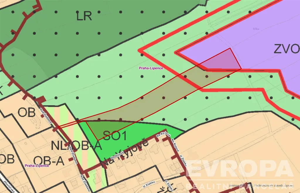 • Budoucí produkční zóna: Podle nového Metropolitního plánu (lokalita 633 / Lipence rozvoj) je menší část pozemku (cca 3 000 m²) definována jako zastavitelná stavební plocha se způsobem využití „produkční“.